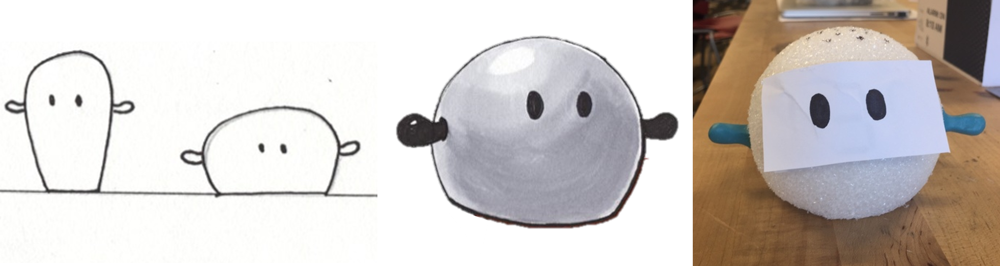 Round is an alarm clock concept that integrates the ease of setting an alarm clock on your phone with the familiar tactile engagement of an old-school alarm clock. Round's form as a cute creature ensures that you are woken up by a friendly face every morning. A Bluetooth module in Round connects to your phone and extracts the data about the alarm you've set. The sketches and the physical prototype below illustrate the concept of Round.
